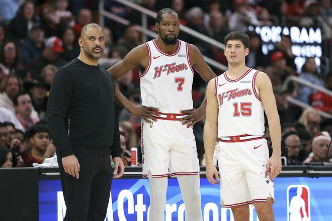 接下来两场比赛,火箭队的对手都是湖人队,火箭队主场作战,面对强大的洛杉矶湖人队,火箭队真正的考验来了。火箭队想要稳守西部第三,那么和湖人队的这两场关键比赛一定要想办法拿下。今天火箭队对阵鹈鹕队,他们的主力中锋申京并没有出战,因为他的背部有伤,乌度卡也没有让他首发出场。小史密斯顶替了申京,而芬尼史密斯则进入到了首发阵容当中。
