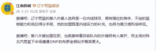 - 又要换了?曝辽篮敲定第8外援,离队之人锁定,3选1,并非莫兰德