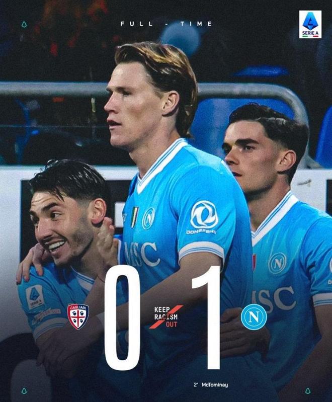 那不勒斯的比赛中,凭借麦克托米奈第2分钟的进球取得完美开局,但之后却一球不进,网友戏称说这是一场3分钟的比赛却硬生生磨了90多分钟,最终客场1:0击败卡利亚里,取得联赛四连胜。此外,这场比赛中还出现了一次争议判罚,那不勒斯中场洛博特卡第17分钟在争球时蹬踏到弗洛伦肖的胸口上,而且慢镜头还能看出他在蹬踏之前还有一个发力的动作,这个明显的红牌动作,裁判却只出示了黄牌。